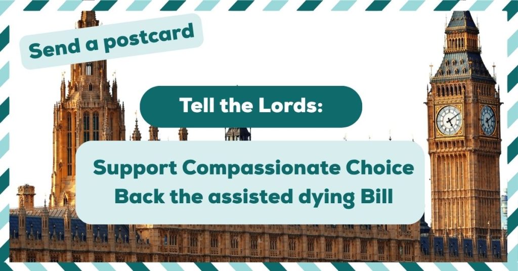 Help us support the Assisted Dying Bill and stop the filibustering in the House of Lords. Raise the issue and send a postcard to peers today. Write to peers.